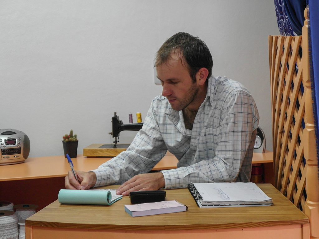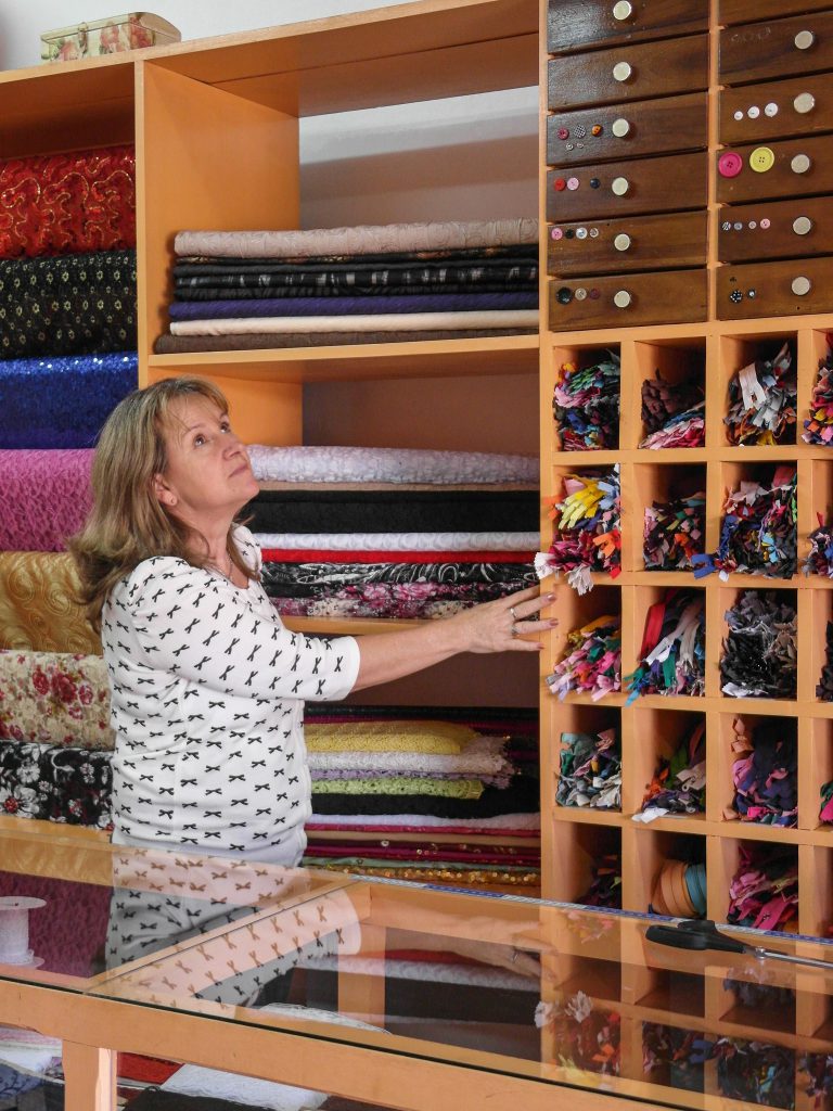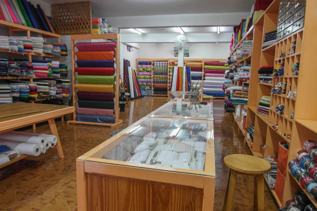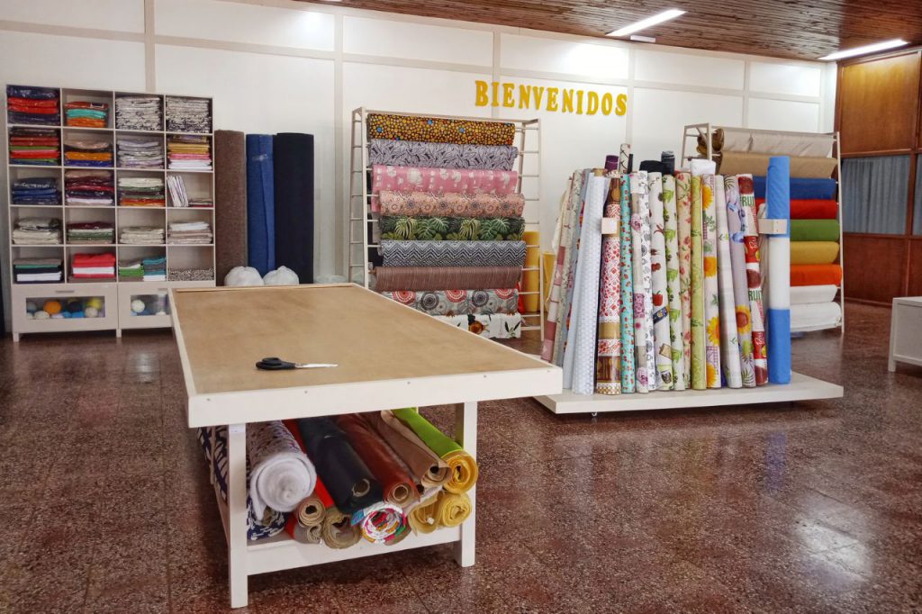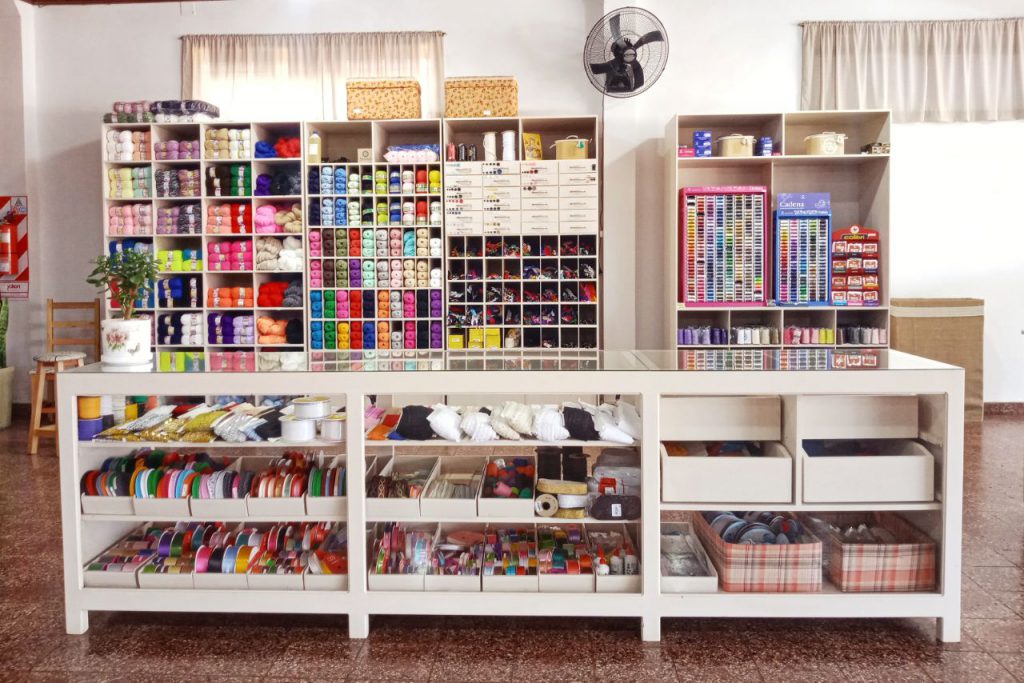 Estamos desde el 2005. El negocio comenzó con poco menos de la mitad. Un exhibidor de cintas y puntillas y una mesa, entre otros. En el 2010 se extendió el local y se pudo exhibir de mejor forma más productos. Se mejoro todo con otra mesa, y estantes para más variedad de telas. Un detalle especial es tener más grandes exhibidores de hilos, ya que al comienzo solo había uno pequeño.